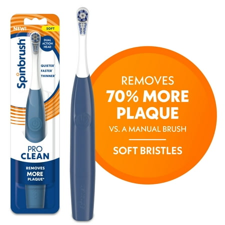 Spinbrush NEW PRO CLEAN Battery Powered Electric Toothbrush for Adults, Soft Bristles, Blue, 1 Count