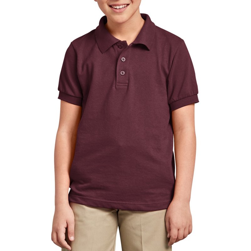 Dickies boys Short Sleeve Pique Polo, Burgundy, Medium 10-12