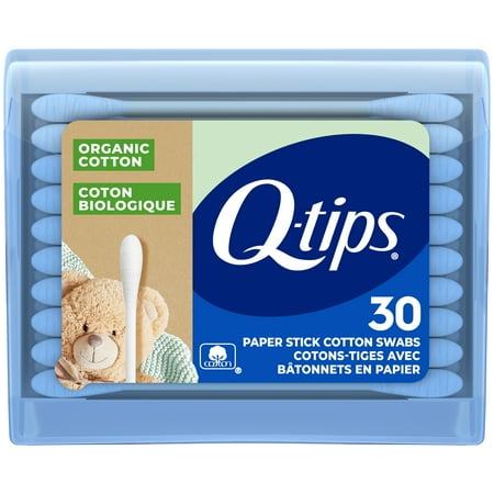 Q-tips Organic Cotton Swabs Travel Size Toiletries, for Baby, Beauty and First Aid, 100% Organic Cotton, 30 Count