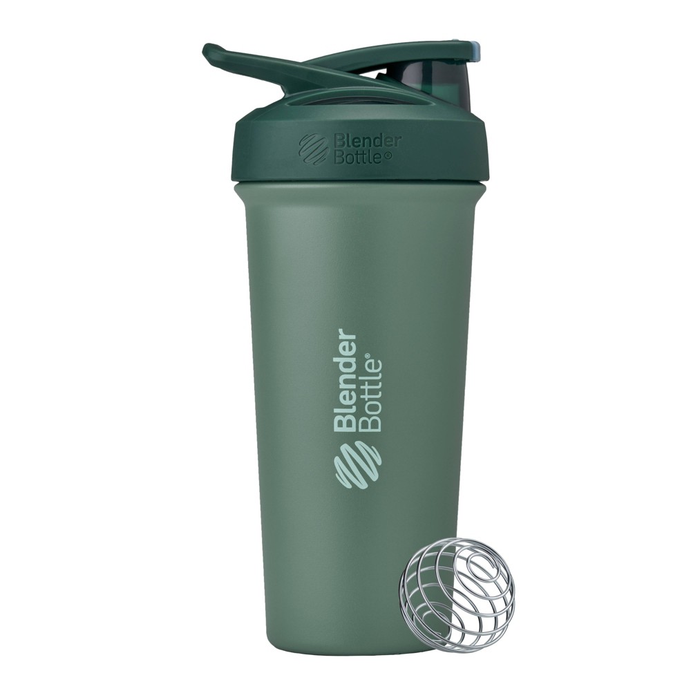 BlenderBottle Sport Sleek Shaker Cup Insulated Stainless Steel Water Bottle with Wire Whisk, 25-Ounce, (Green) Seaglass