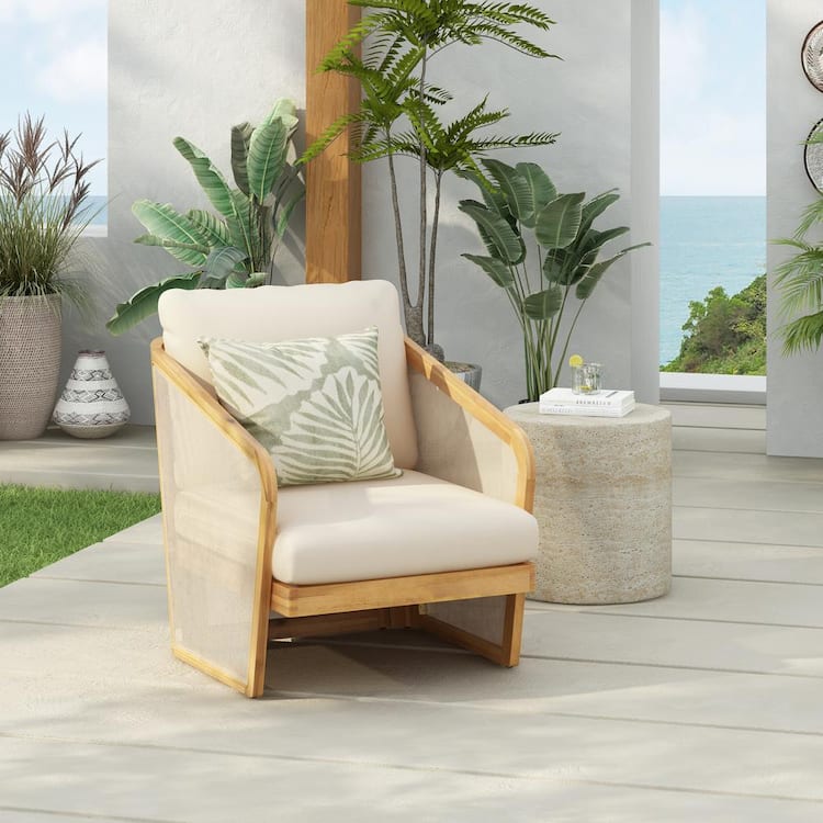 CHRISTOPHER KNIGHT HOME Bendgn Teak Finish Acacia Wood Patio Outdoor Lounge Chair with Beige Cushion