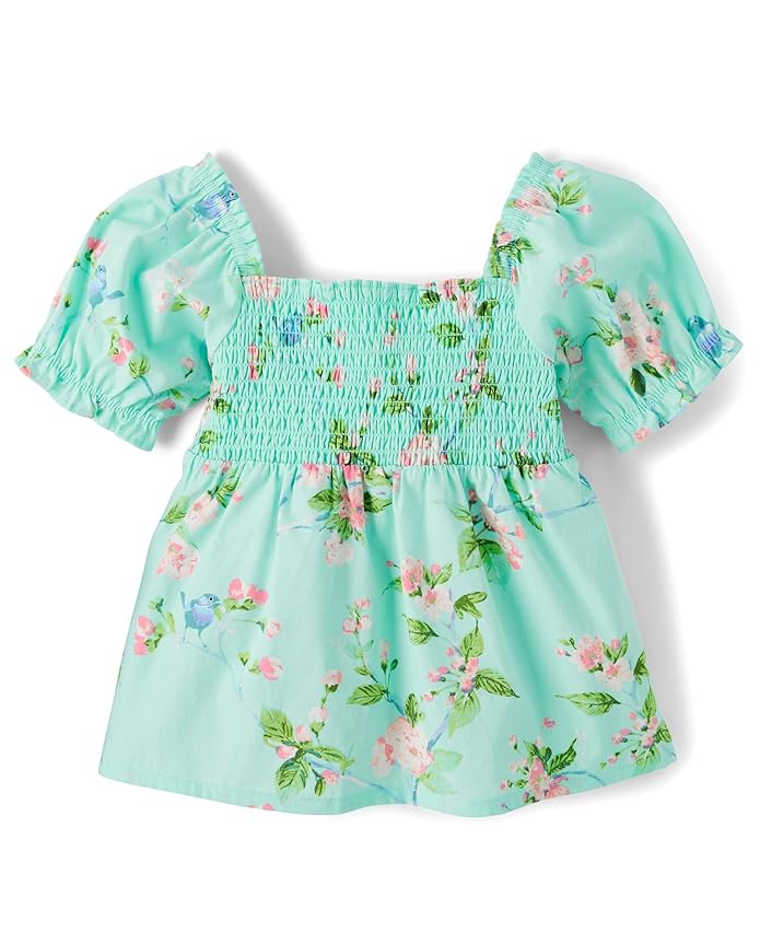 Gymboree,Girls,and Toddler Short Sleeve Woven Shirts,Mint Tea Floral,5T