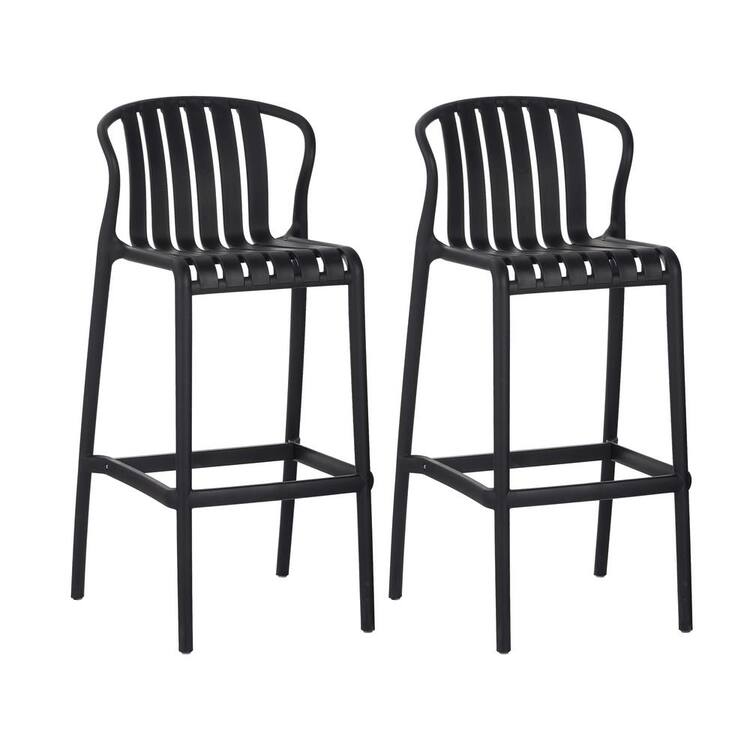 CHRISTOPHER KNIGHT HOME Pixel 29.5 in. H Black Plastic Outdoor Bar Stool (2-Pack), Perforated Slat Back