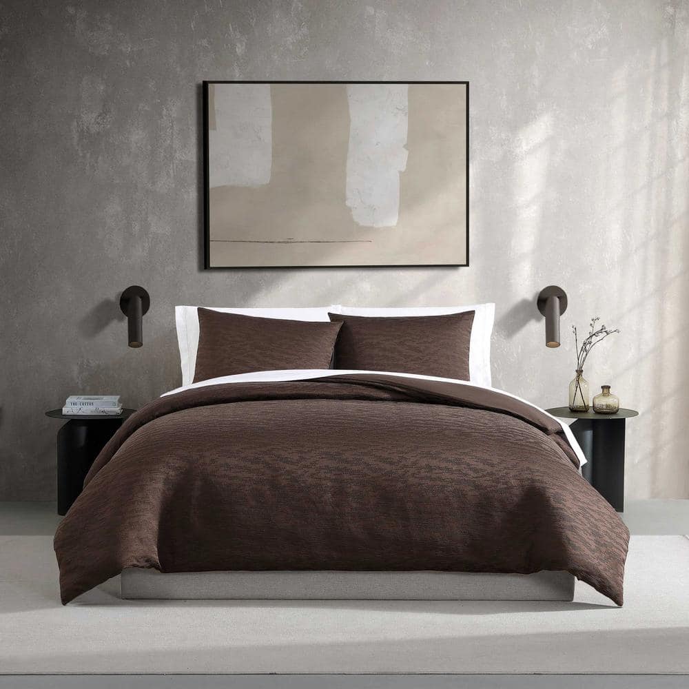VERA WANG Illusion Lines 3-Piece Brown Jacquard Polyester King Duvet Cover Set