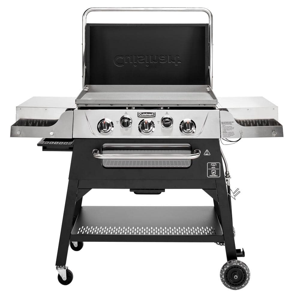 Cuisinart 28” Outdoor Griddler and Broiler Combo, 2-in-1 Carbon Steel Flat-Top Grill and Broiler with Hood, Adjustable Rack, Wheels, Side Tables, Large Cooking Area for BBQs, Outdoor Griddle Station