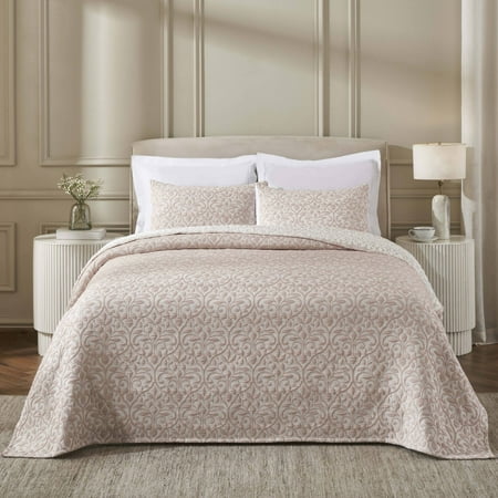 Superior Vineyard Cotton Blend Matelasse Coverlet, Queen, Blush