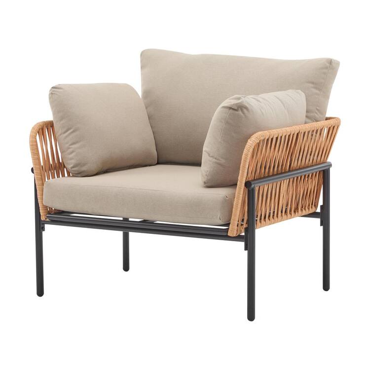 CHRISTOPHER KNIGHT HOME Belvedere Outdoor Patio Lounge Chair with Beige Cushion, Rope Weave, Metal Frame, Natural
