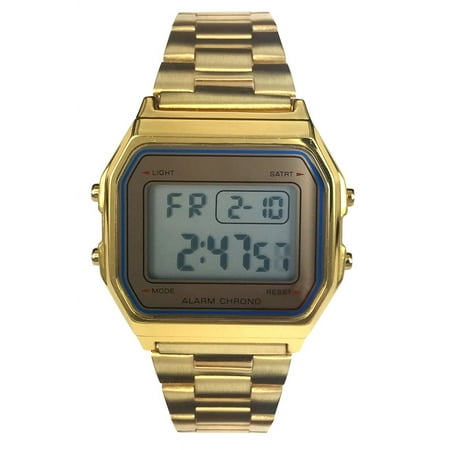 George Mens Digital Stainless Steel Gold Tank Wristwatch