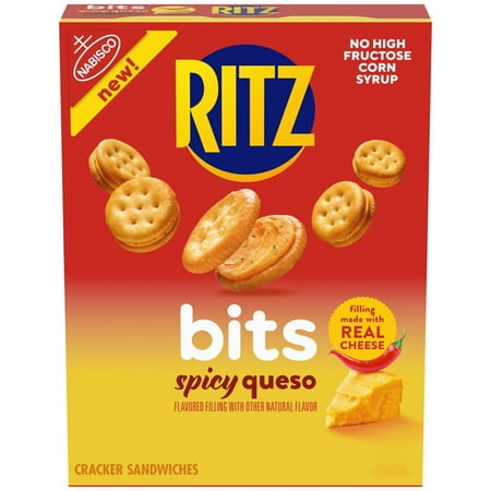 RITZ Bits Spicy Queso Cheese Sandwich Crackers, Snacks for Kids and Adults, Lunch Snacks, 8.8 oz