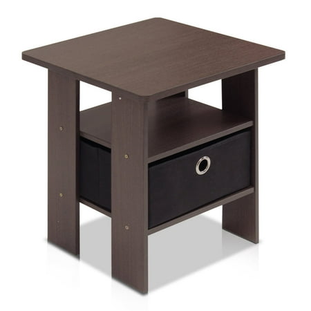 Furinno Andrey Engineered Wood End Table with Bin Drawer in Dark Brown/Black
