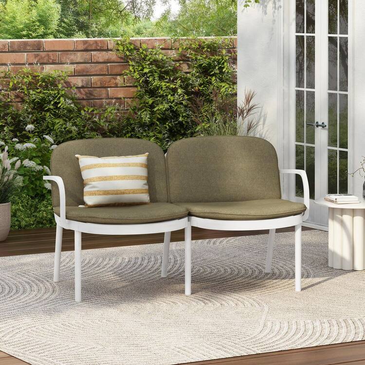 CHRISTOPHER KNIGHT HOME Luna Modern Patio White Polypropylene Plastic Frame Outdoor Loveseat with Green Cushions
