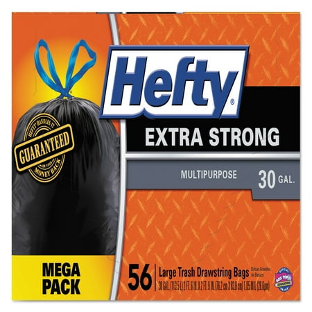 Hefty Cinch Sak Tall Kitchen & Trash Bags, 30 Gal, 1.1m, 30x33, Black, 4 Boxes/Carton