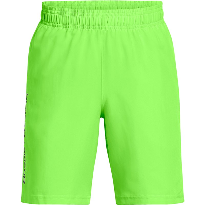 Under Armour Boys' Woven Wordmark Shorts Cyber Green/Black, Large - at Academy Sports