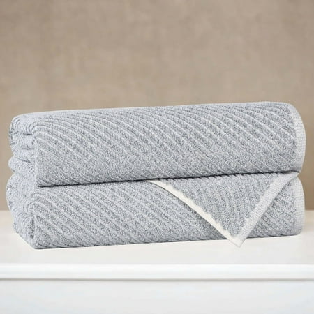 Superior Amelia Viscose Cotton Blend Medium Weight Bath Towels, Set of 2, Denim Blue