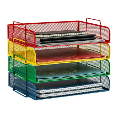 Mind Reader Stackable Paper Tray Metal Mesh Pink Rainbow