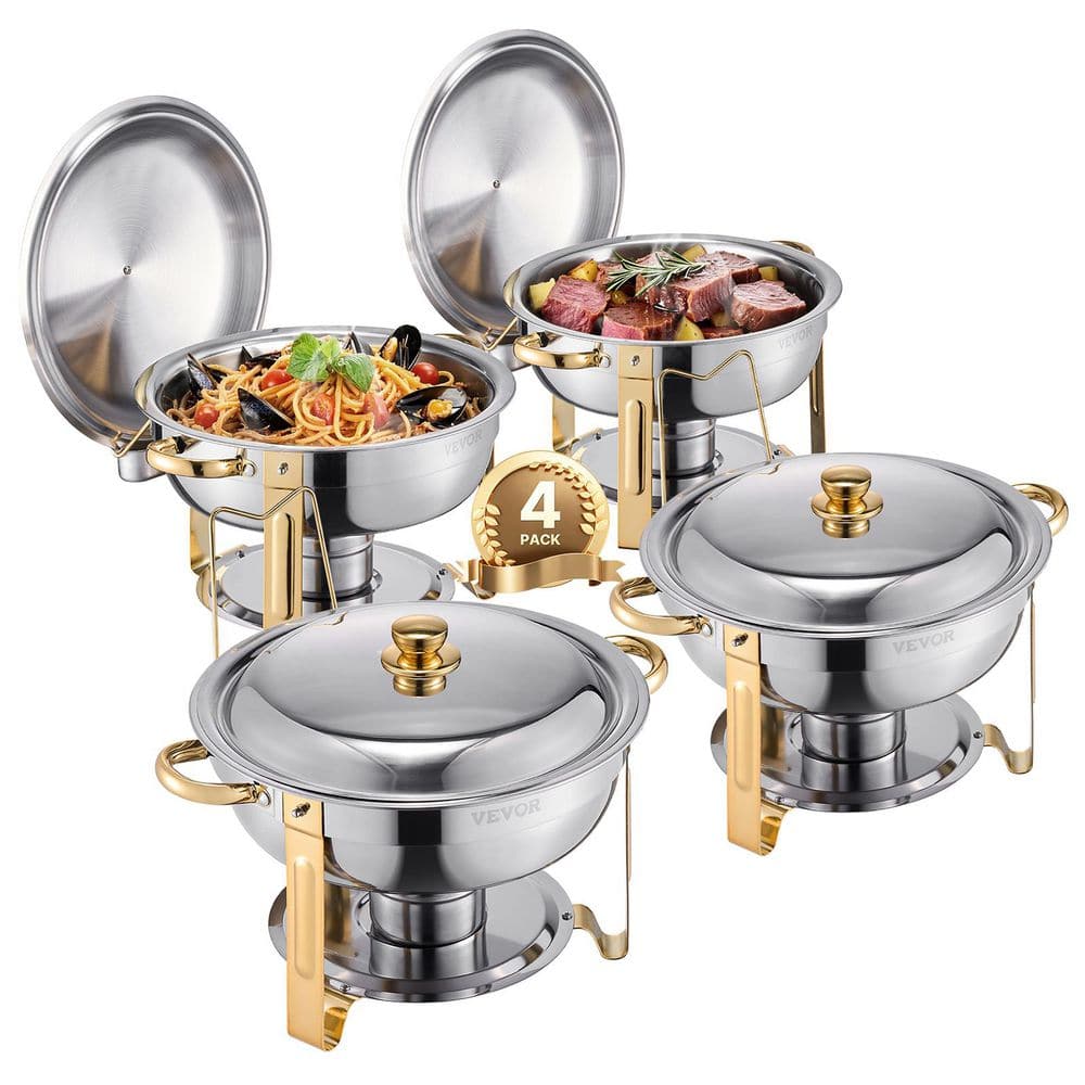 VEVOR Chafing Dish Buffet Set, 5 Qt. 4 Pack, Silver Stainless Steel Dish Chafer with 4 Full Size Pans, Round Catering Warmer