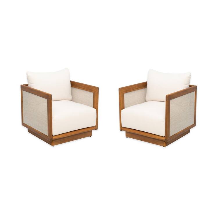CHRISTOPHER KNIGHT HOME Suzanne Patio Teak Finish Solid Wood Deep Seating Outdoor Lounge Chair with Beige Cushions, Woven Textilene Sides,2-Pack