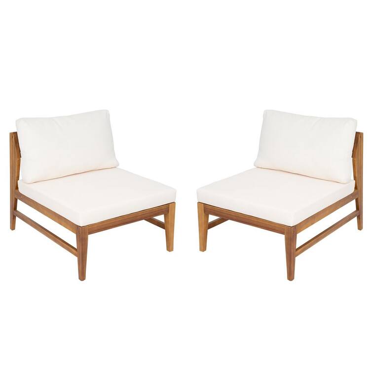 CHRISTOPHER KNIGHT HOME Cali Teak Finish Acacia Wood Patio Outdoor Lounge Chair with Cream Cushions, Slatted Back, Deep Seating, Set of 2