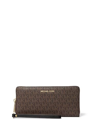 Michael Kors Jet Set Travel Continental, Gold-Tone Hardware/MK Signature Coated Twill/Brown/Black