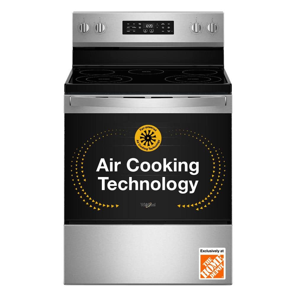 Whirlpool 30 in. 5 Burner Elements Freestanding Electric Range in Stainless Steel with Air Cooking Technology
