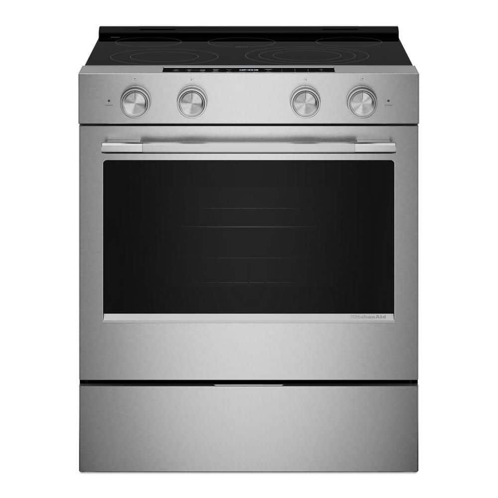 KitchenAid 30 in. 5 Element Slide-In Electric Range in PrintShield Stainless Finish wih Convection Cooking Modes