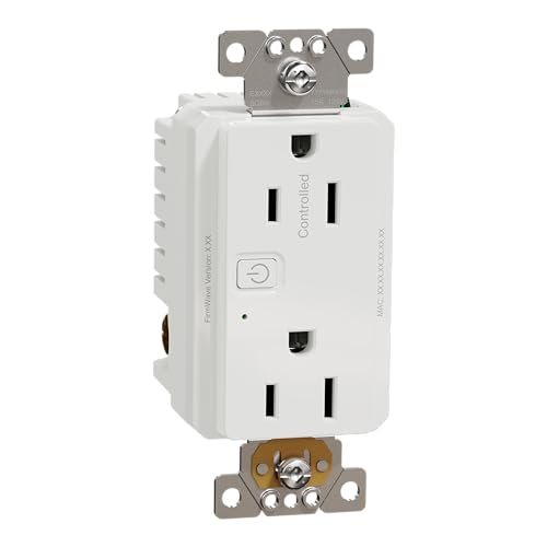 Square D by Schneider Electric Z-Wave Smart Outlet, Tamper Resistant Energy Monitoring Duplex Smart Home Compatible Electrical Outlet, 15A 120VAC, 1-Gang, Flush Mount, Matte White (SQR44102WHZ)