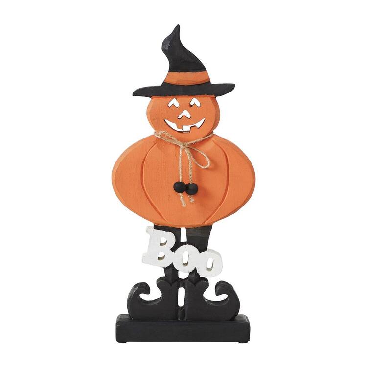 VHC BRANDS 15.5 in. Jack-O-Lantern Boo Wooden Halloween Table Decor