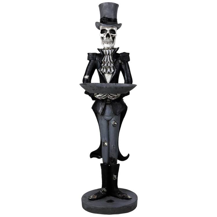 Northlight Skeleton Butler with Tray Standing Halloween Statue-4.5'
