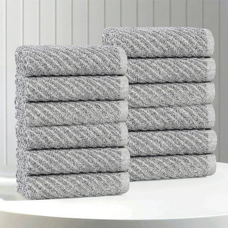 Superior Milo Smart Twist Cotton Medium Weight Face Towels Washcloths, Set of 12, Silver