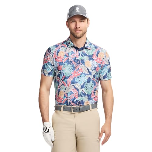 Izod Men's Swingflex Elite Short Sleeve Golf Polo, Medieval Blue Flamingo, Small