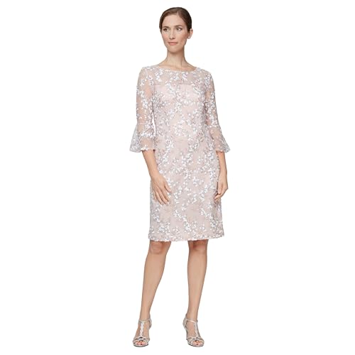 Alex Evenings Women's Short Shift Cocktail Gown with Bell Sleeves, Formal Events, Wedding Guest Dress, Shell Pink, 8