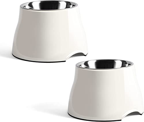 Fluffydream Elevated Dog Bowls, Prevention of Vertebrae Disease, Non-Slip With Stainless Steel Bowl, High Capacity Food Bowls (SnowWhite 2 Packs, L 860ML / 3 Cups)