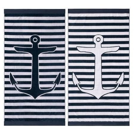 Superior 2-Piece Yacht Club Cotton Beach Towel Set, Navy Blue