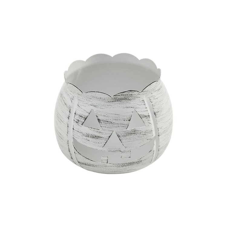 VHC BRANDS 4.25 in. Antique White Jack-O-Lantern Halloween Candle Holder