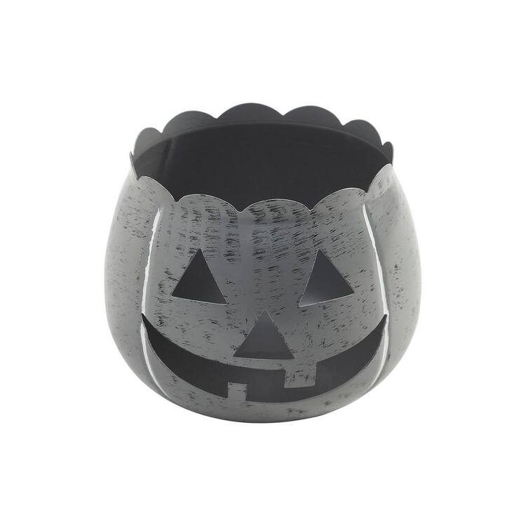VHC BRANDS 6.25 in. Antique Grey Jack-O-Lantern Halloween Candle Holder