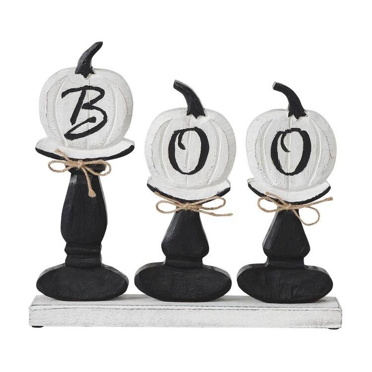 VHC BRANDS 12.5 in. BOO Pumpkins Wooden Table Sign Halloween Decor