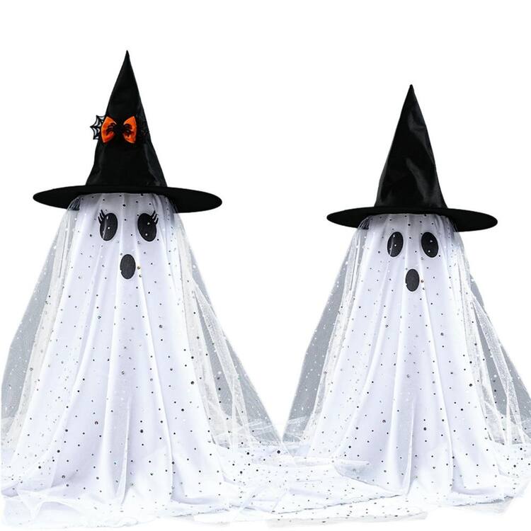 OGETFUUR 2-Piece 23.6 in. Halloween Spooky Ghost Light with String Lights and Remote Control, Halloween Table Decorations