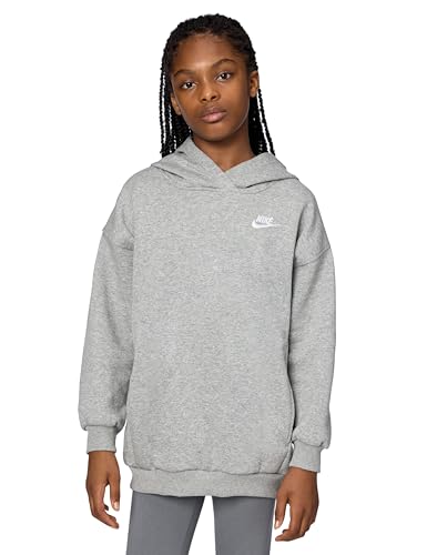 Nike Girl's Sportswear Club Fleece Oversized Pullover Hoodie, Dark Grey Heather/White, Medium