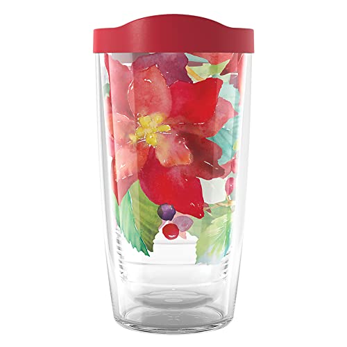 Tervis Christmas Holiday Poinsettias Made in USA Double Walled Insulated Tumbler Travel Cup Keeps Drinks Cold & Hot, 16oz, Classic