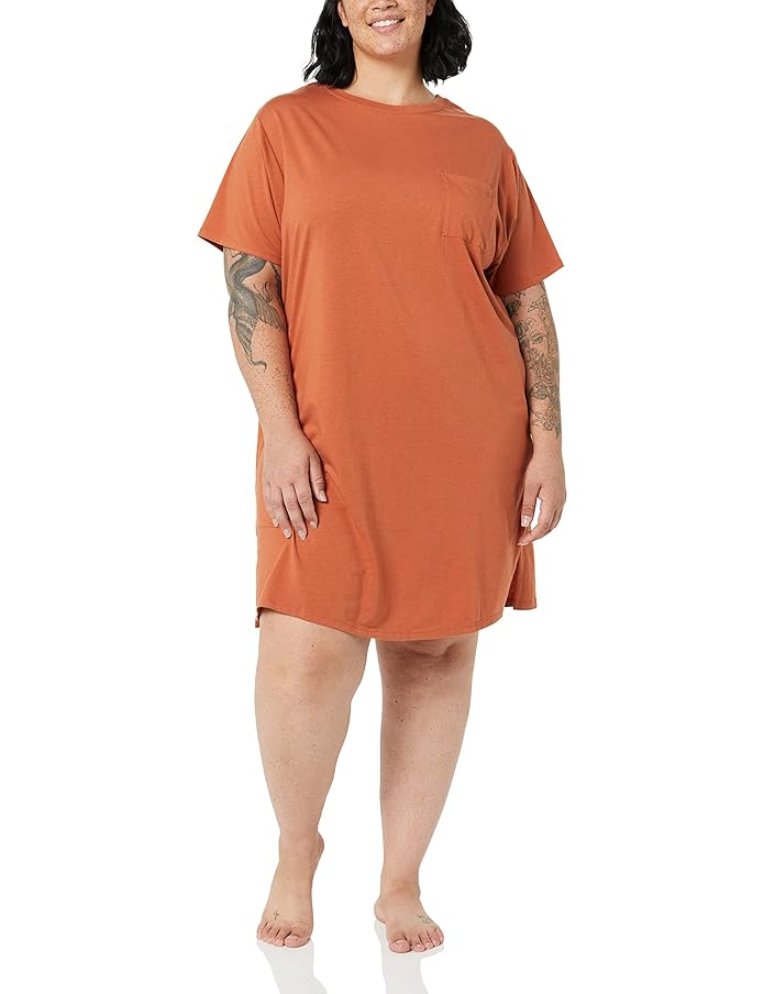 Amazon Essentials Women's L Knit Jersey Sleep Tee Nightdress, Terracotta, L