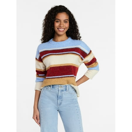 Time and Tru Women’s Brushed Stripe Sweater, Midweight, Sizes XS-XXXL