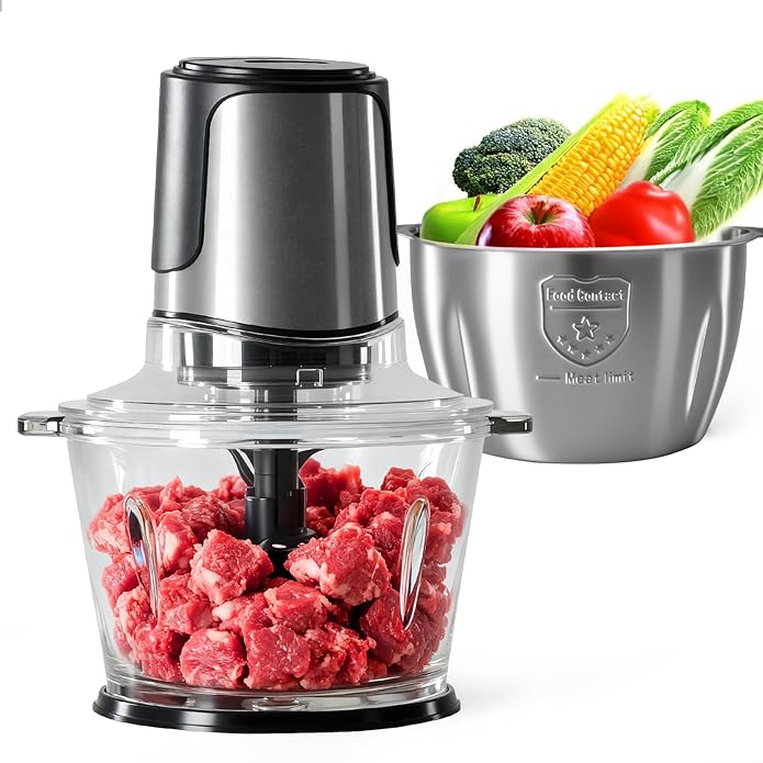 OLIXIS Electric Food Processor, 450W Meat Grinder & Vegetable Chopper with 2 Bowels for Home Use, Food Chopper with Double S-Blades for Vegetable, Onion, Garlic, Meat, Nuts