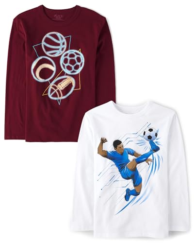 The Children's Place,Boys,Sports Long Sleeve Graphic T-Shirts,Multipacks,Soccer Player/Sport Balls 2-Pack,XX-Large
