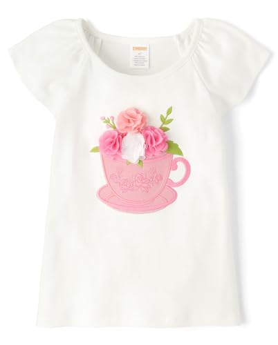 Gymboree,Girls,and Toddler Sleeveless Knit T-Shirt,Tea Cup Flowers,3T