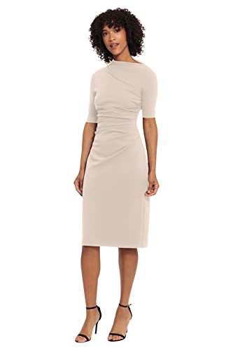 Maggy London Women's Dresses Side Pleat Dress with Asymmetric Neck and Elbow Sleeves