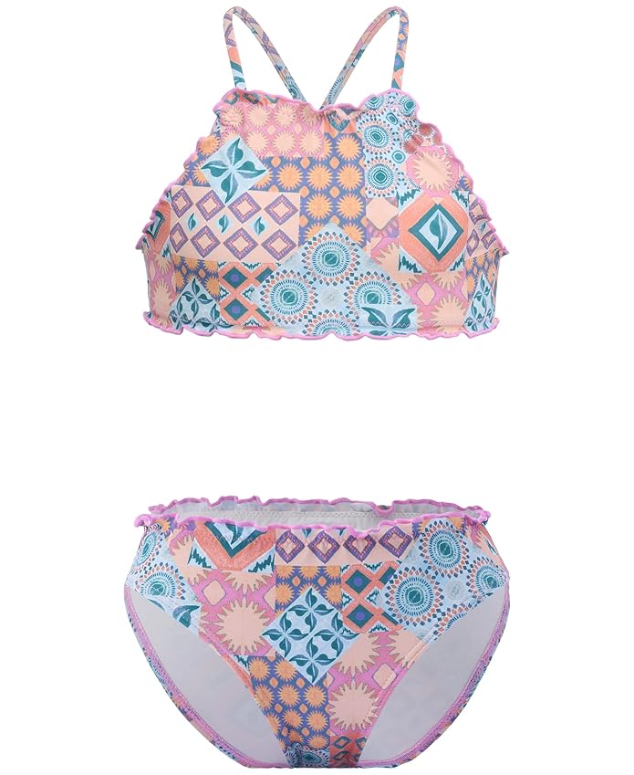 Billabong Girls' Two-Piece Bikini Swimsuit Set, UPF 50+ Sun Protection, Quick-Dry Bathing Suit, Cyclamen Moon, 7