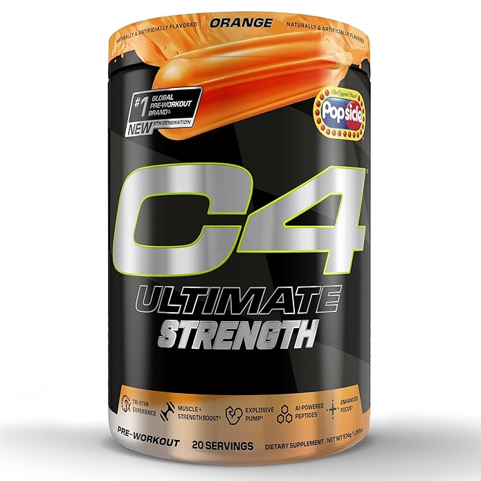 Cellucor C4 Ultimate Strength Pre Workout Powder - Tri-Stim Experience 300mg Caffeine+TeaCrine+Dynamine - Creatine & Beta-Alanine - Energy Supplement for Men & Women - Orange Popsicle, 20 Servings