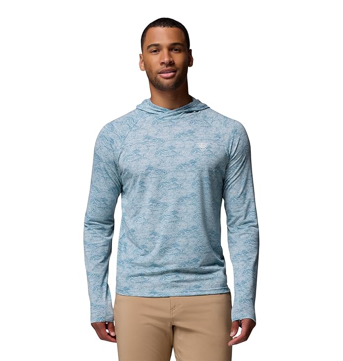 Columbia Mens PFG Uncharted Long Sleeve Sun Protection Hoodie, Crushed Blue Pez Gallo, XX-Large