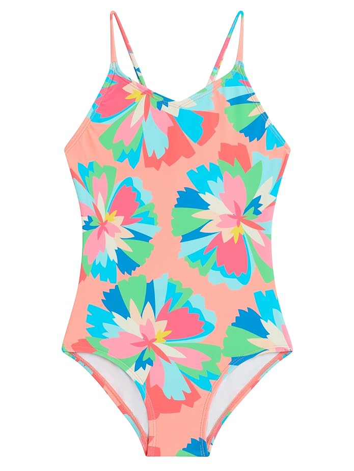 Billabong Girls' Two-Piece Bikini Swimsuit Set, UPF 50+ Sun Protection, Quick-Dry Bathing Suit, Whitecap Wildflower, 7