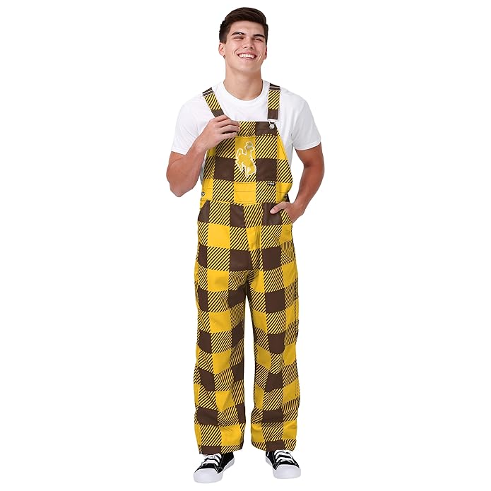FOCO Wyoming Cowboys NCAA Mens Plaid Bib Overalls - XL